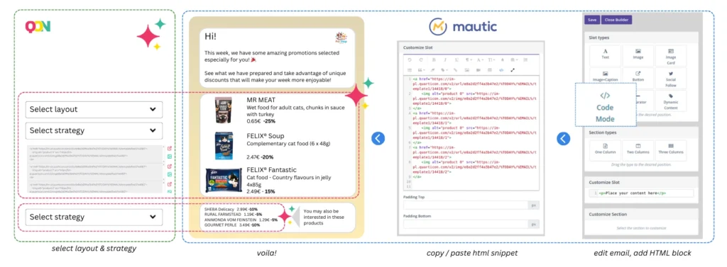 Integrating Quarticon’a product blocks into your Mautic email campaigns is a proven way to increase conversions while saving up to 90-95% of your effort and time. Whether you’re running a sale, launching new products, or sending reminders, up-to-date and personalized product makes your emails more engaging and action-driven.